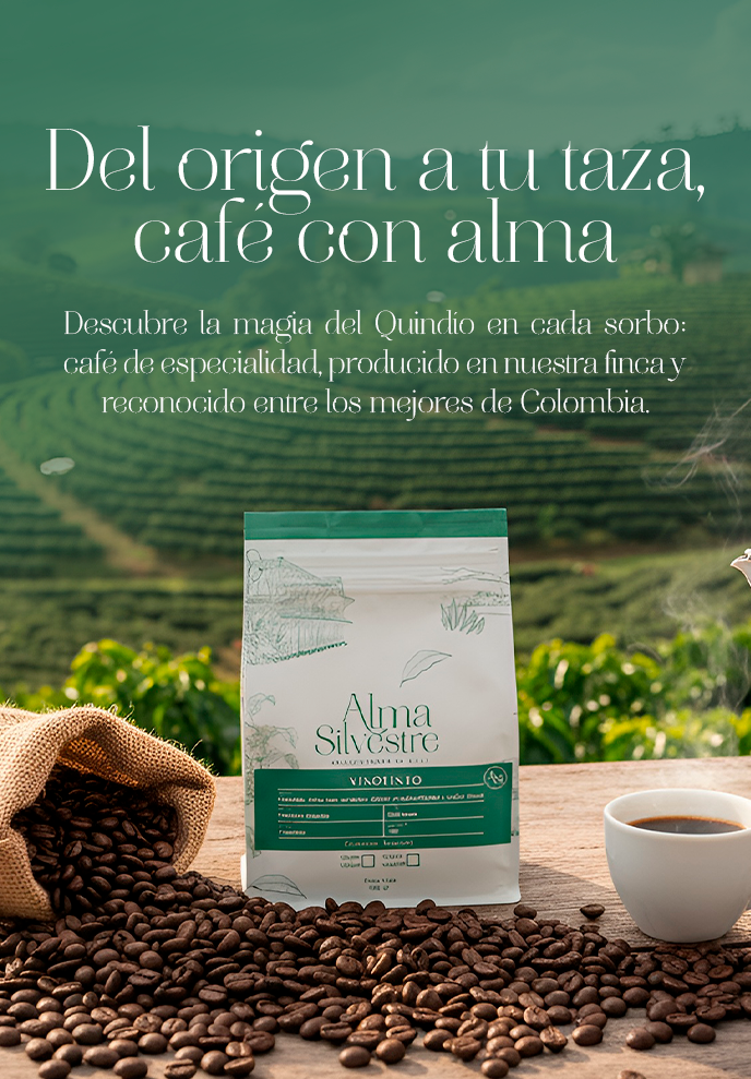 En Alma Silvestre Café somos más que productores: somos una familia que vive y respira café desde el corazón del Quindío. Nacimos en 2021 con un sueño claro: compartir la magia de nuestro origen en cada taza, llevando al mundo un café de especialidad cultivado con responsabilidad, pasión y respeto por la tierra.
